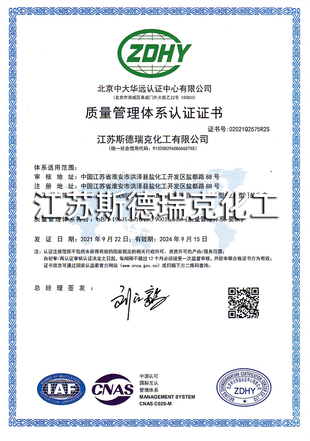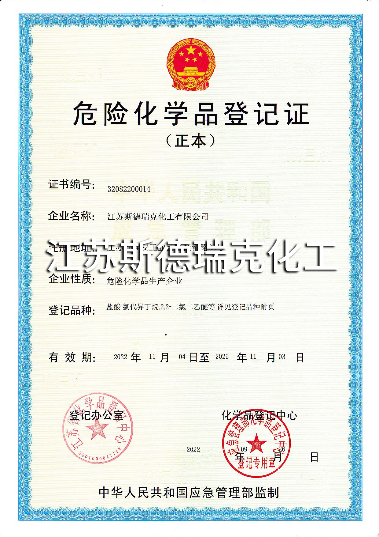 江蘇斯德瑞克化工有限公司成立于2002年,是一家集研發(fā)、生產和銷售一體化的“國家高新技術企業(yè)”。現(xiàn)有員工100多人,其中科技人員占20%以上;位于江蘇省淮安市鹽化工園,占地面積180畝,建筑面積達38000多平方米。